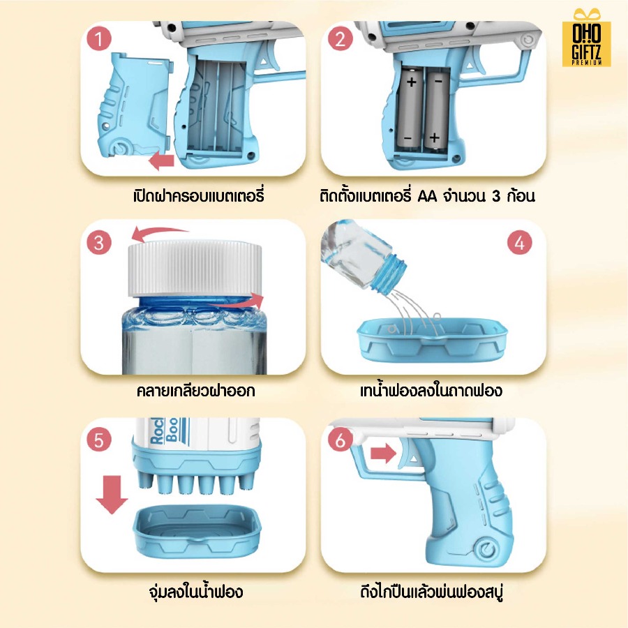 เครื่องเป่าฟองสบู่ไฟฟ้า ดีไซน์เก๋ไก๋ สีสันสดใสสวยงาม ผลิตจากวัสดุคุณภาพดี ผลิตฟองบับเบิลได้อย่างง่ายๆ ผลิตจากวัสดุที่เป็นมิตรกับสิ่งแวดล้อมและ ทนทาน แข็งแรง ทนต่อการตกหล่น เล่นได้ยาวนาน ผลิตจากวัสดุที่เป็นมิตรกับสิ่งแวดล้อมและ ทนทาน แข็งแรง ทนต่อการตกหล่น เล่นได้ยาวนาน เพิ่มความสนุกสนาน น้ำหนักเบา พกพาสะดวก