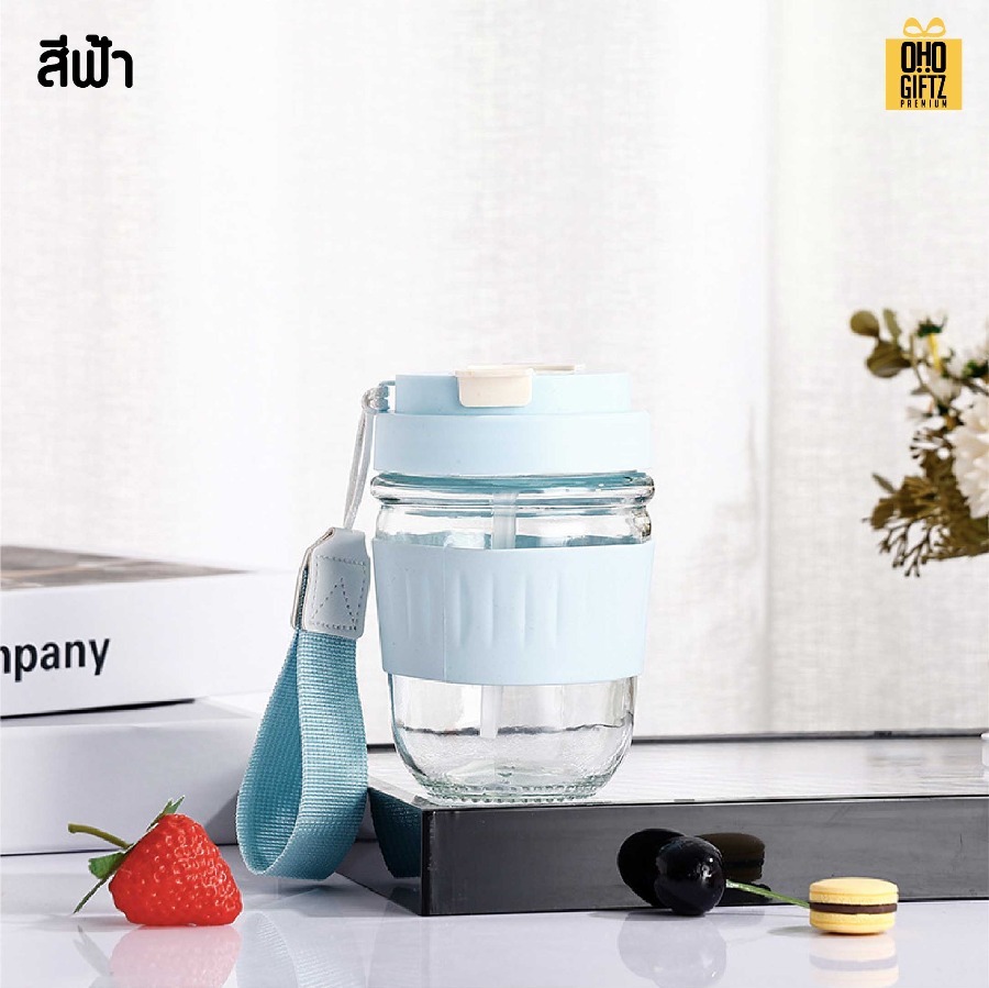 แก้วน้ำพกพามีเชือกคล้องมือ สกรีนโลโก้ ทำเป็นของพรีเมี่ยมได้ (ขั้นต่ำ 100 ชิ้น)