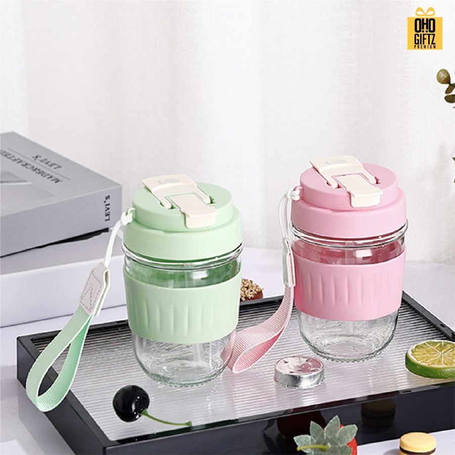 แก้วน้ำพกพามีเชือกคล้องมือ ดีไซน์เก๋ไก๋ สีสันสวยงาม สามารถใช้ใส่เครื่องดื่มได้ตามต้องการ ผลิตจากวัสดุคุณภาพดี ขนาดพอดีต่อการใช้งาน