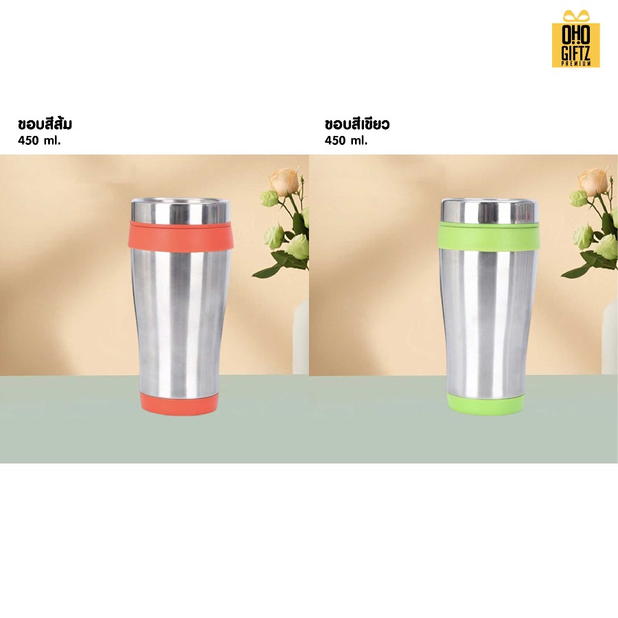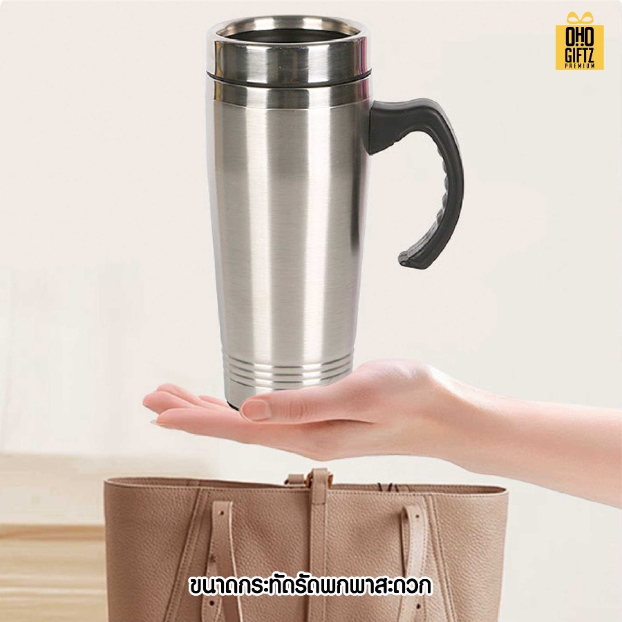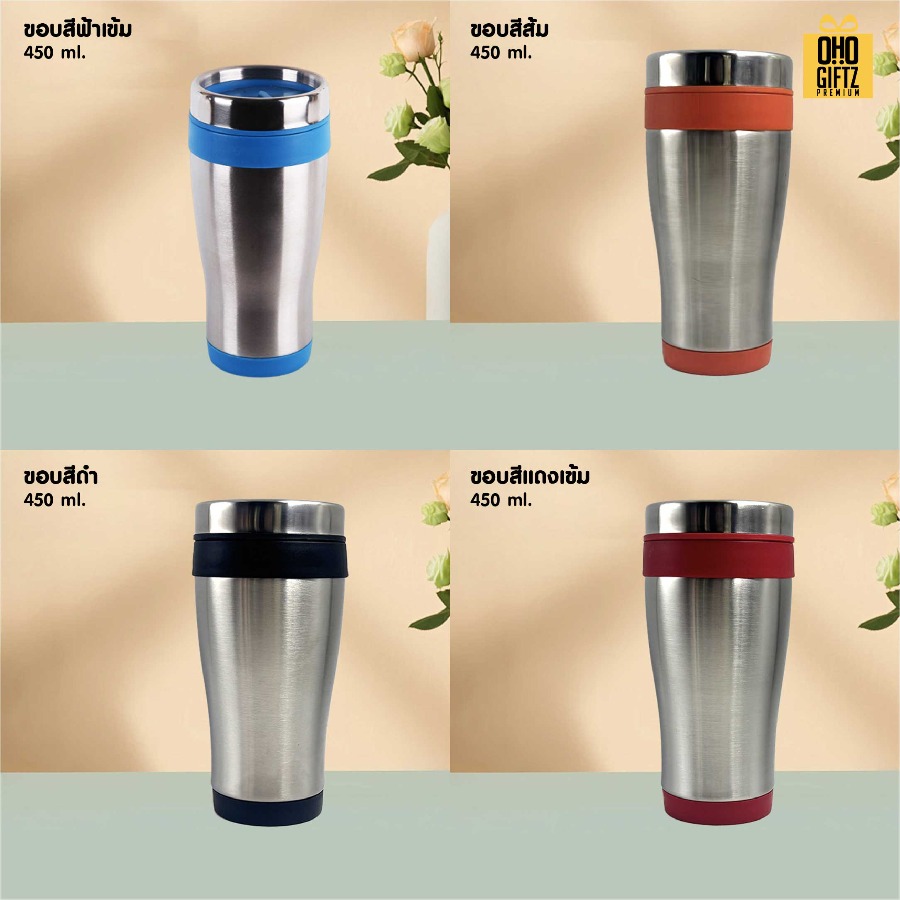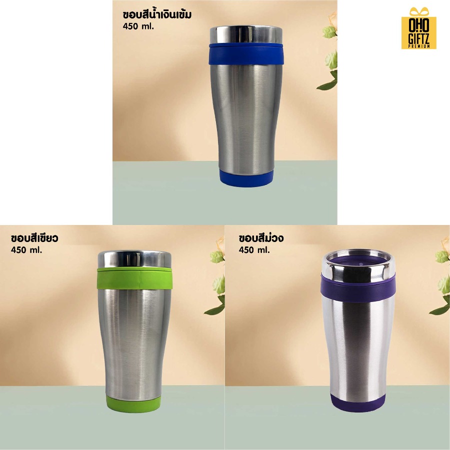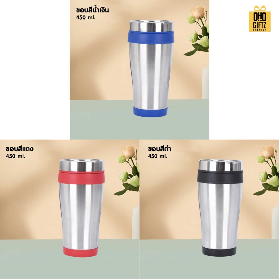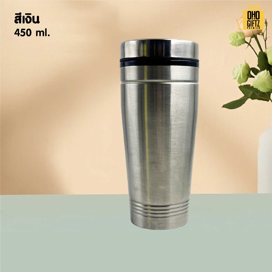 แก้วน้ำสแตนเลสใส่ในรถ สกรีนโลโก้ ทำเป็นของพรีเมี่ยมได้ (ขั้นต่ำ 100 ชิ้น)