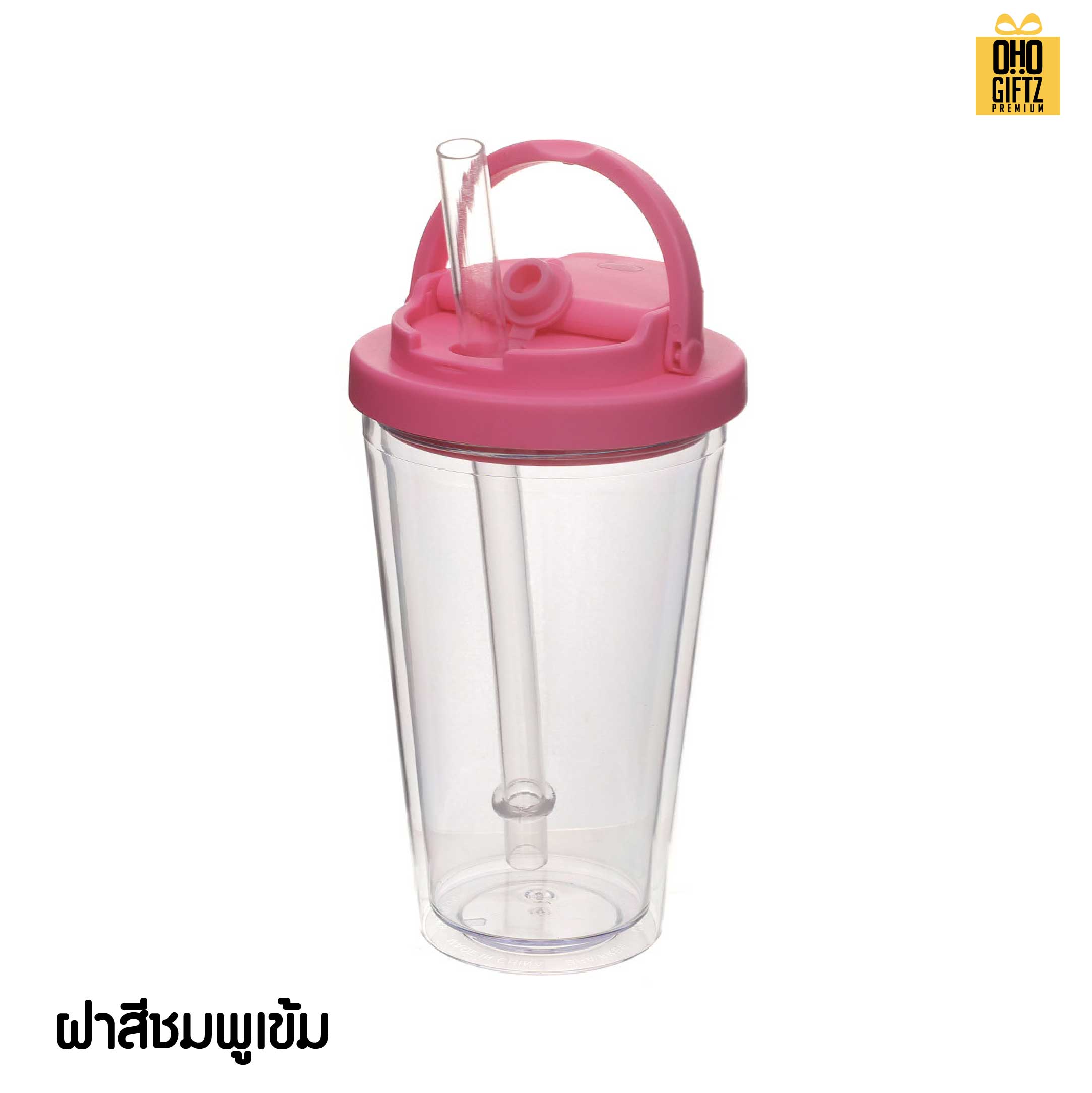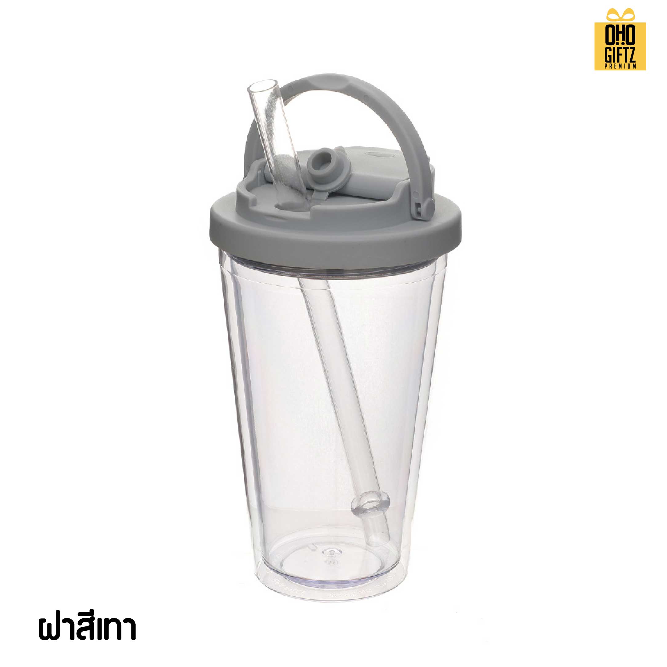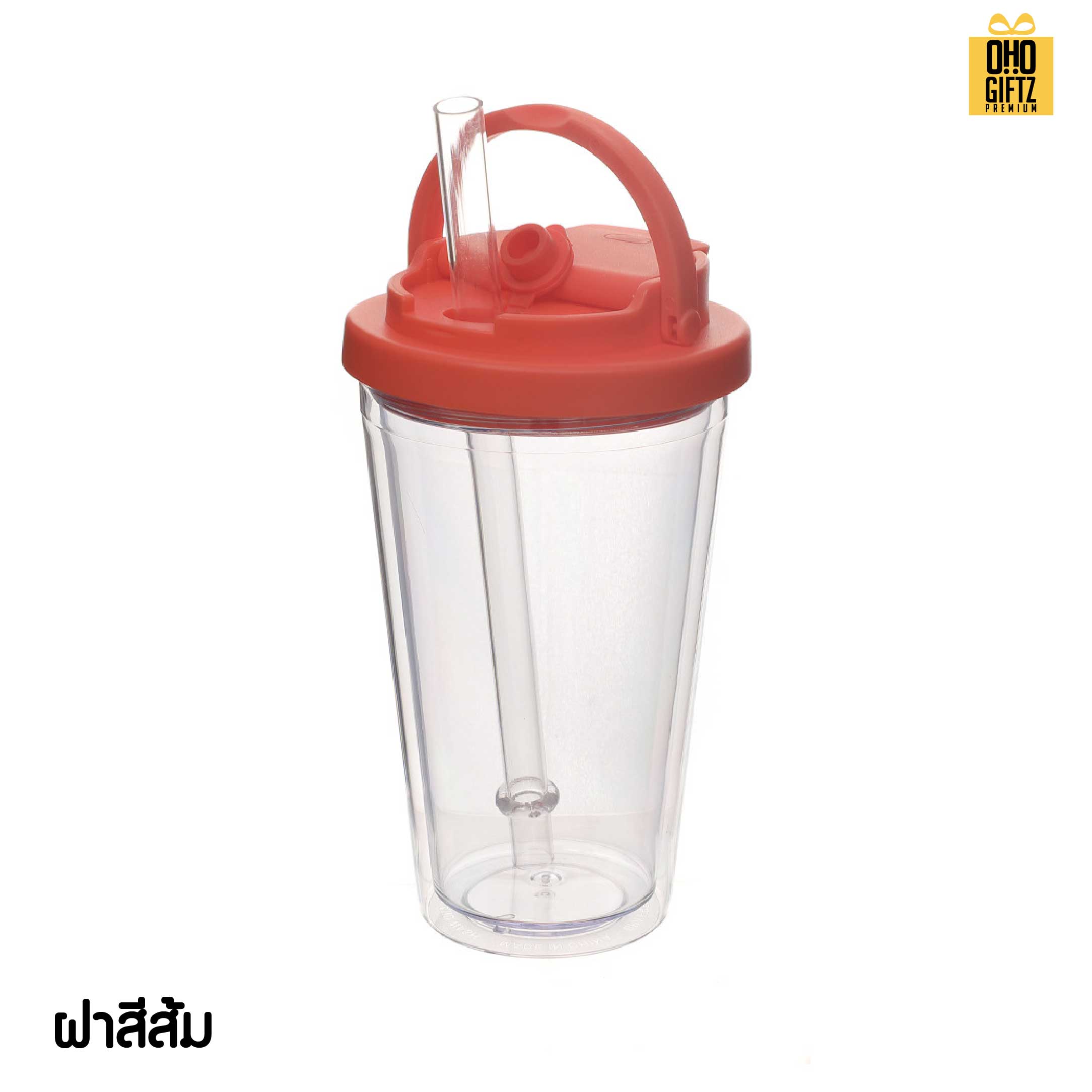 แก้วพลาสติกทรงกรวย 16oz พร้อมหลอดดูดในตัว สกรีนโลโก้ ทำเป็นสินค้าพรีเมี่ยม (ขั้นต่ำ 100 ชิ้น)