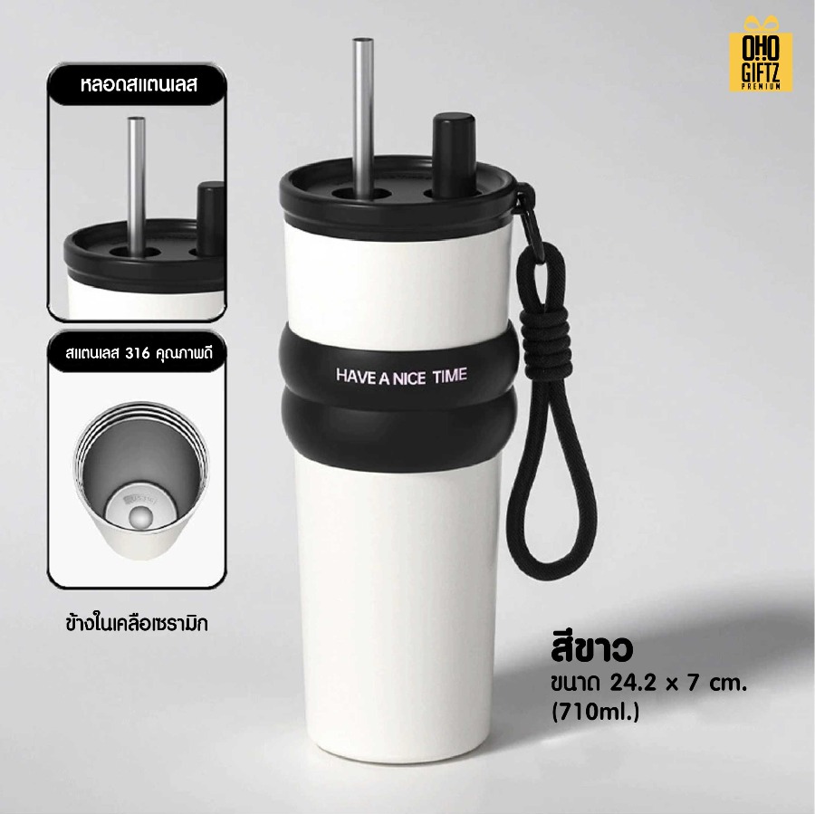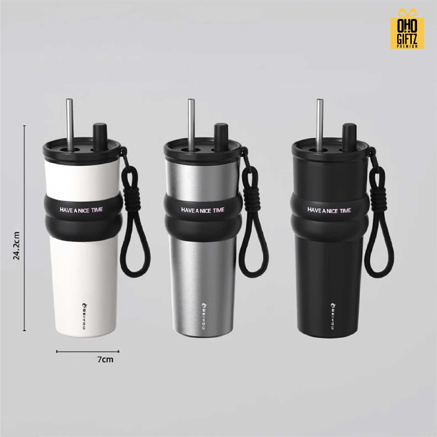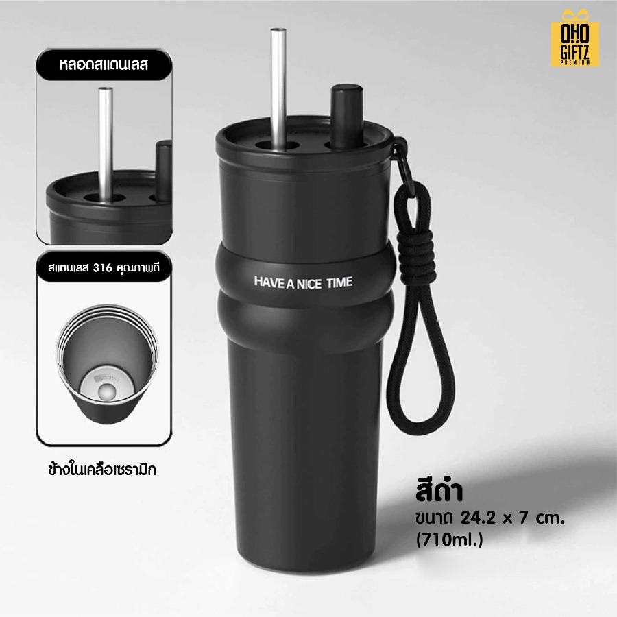 แก้วสแตนเลสทรงสูง มีสายคล้องมือ ดีไซน์มินิมอล สีสันสดใส สามารถเก็บอุณหภูมิได้เป็นอย่างดี มีสายคล้องมือในตัว สะดวกในการถือ ผลิตจากสเเตนเลส 316 คุณภาพดีแข็งแรงทนทาน พกพาสะดวก
