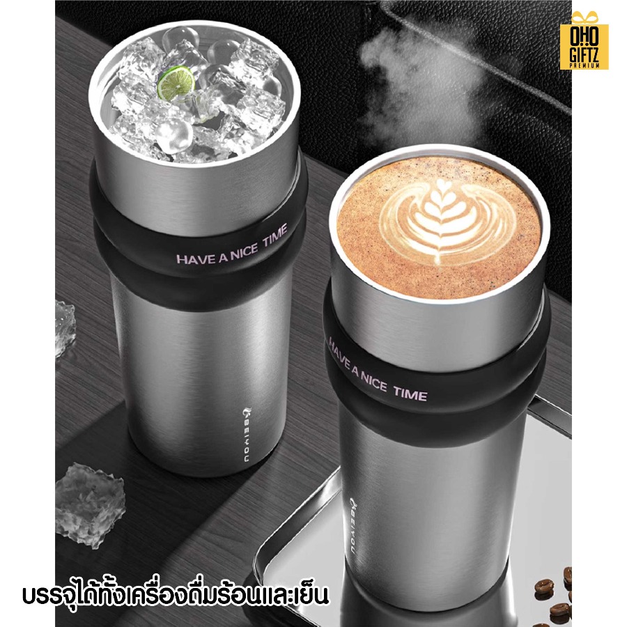 แก้วสแตนเลสเก็บความเย็นมีหู สกรีนโลโก้ ทำเป็นของพรีเมี่ยมได้