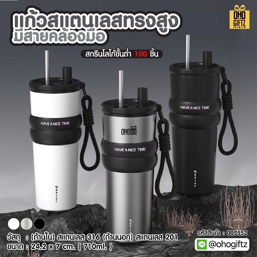 แก้วสแตนเลสทรงสูง มีสายคล้องมือ สกรีนโลโก้ ทำเป็นของพรีเมี่ยมได้ รับผลิต แก้วสแตนเลสทรงสูง มีสายคล้องมือ พร้อมสกรีนชื่อ หรือโลโก้ต่างๆ ทำเป็นของพรีเมี่ยม ของที่ระลึก ของขวัญ เพื่องานสัมมนา, ประชาสัมพันธ์กิจกรรมบริษัท, สร้างแบรนด์ หรือโปรโมทสินค้า