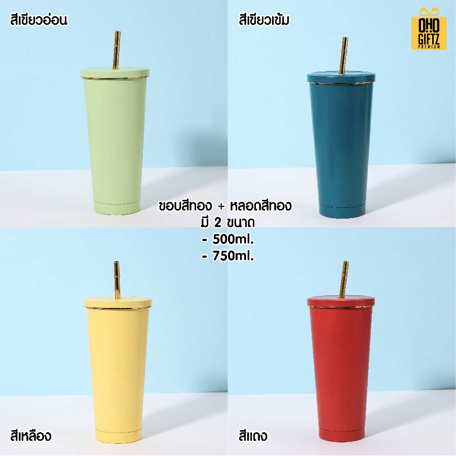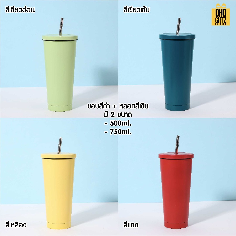 แก้วสแตนเลสพร้อมหลอด ดีไซน์มินิมอล สีสันสดใส สามารถเก็บอุณหภูมิได้เป็นอย่างดี ฝาขวดปิดแน่นสนิท สะดวกในการถือ ผลิตจากสเเตนเลส 304 คุณภาพดีแข็งแรงทนทาน พกพาสะดวก