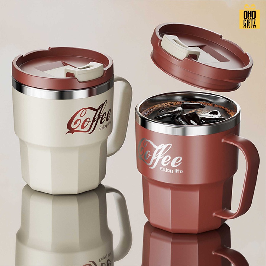 แก้วสแตนเลสพร้อมหูจับ ดีไซน์มินิมอล สีสันสดใส สามารถเก็บอุณหภูมิได้เป็นอย่างดี ฝาแก้วปิดแน่นสนิท สะดวกในการถือ ผลิตจากสเเตนเลส 304 คุณภาพดีแข็งแรงทนทาน พกพาสะดวก