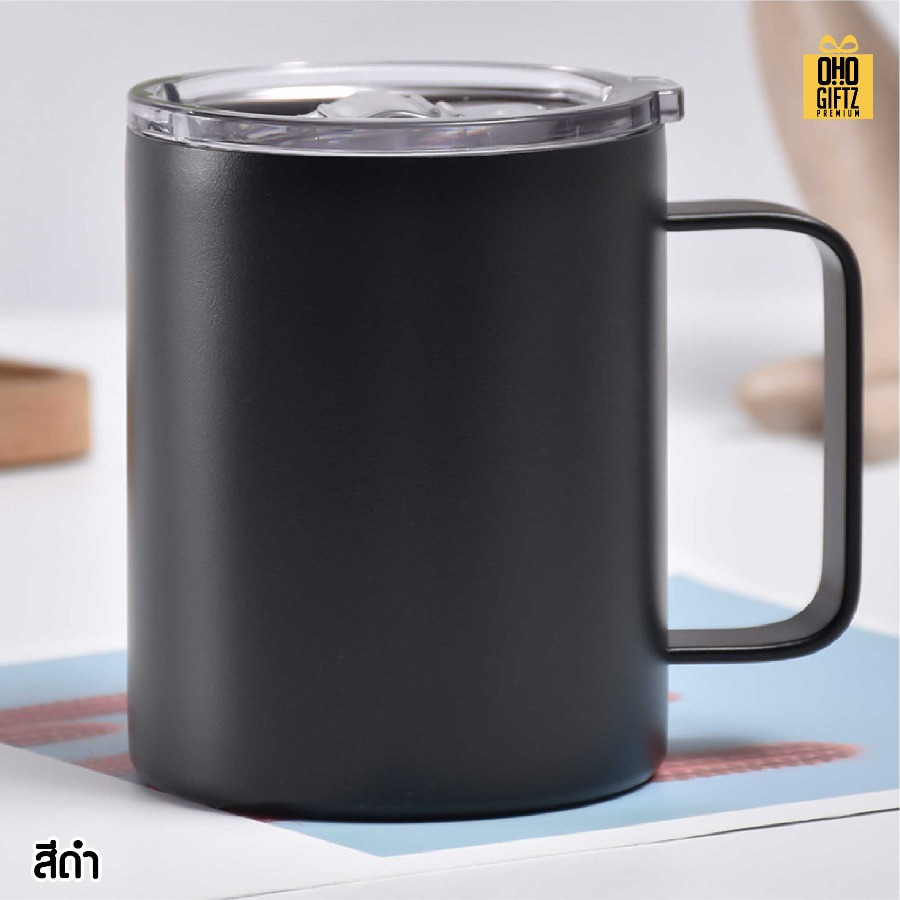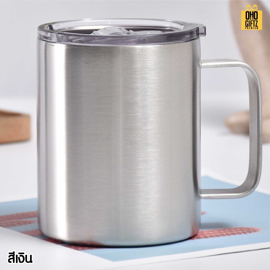 แก้วสแตนเลสมีหู สกรีนโลโก้ ทำเป็นของพรีเมี่ยมได้ (ขั้นต่ำ 100 ชิ้น)