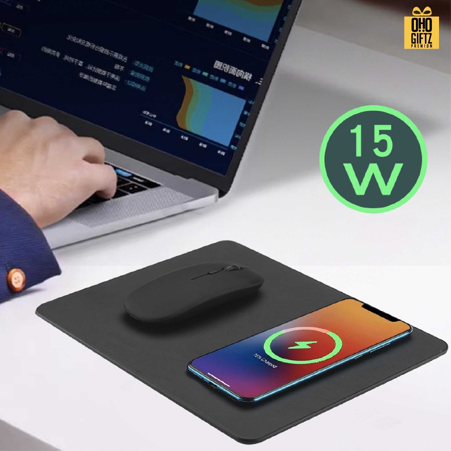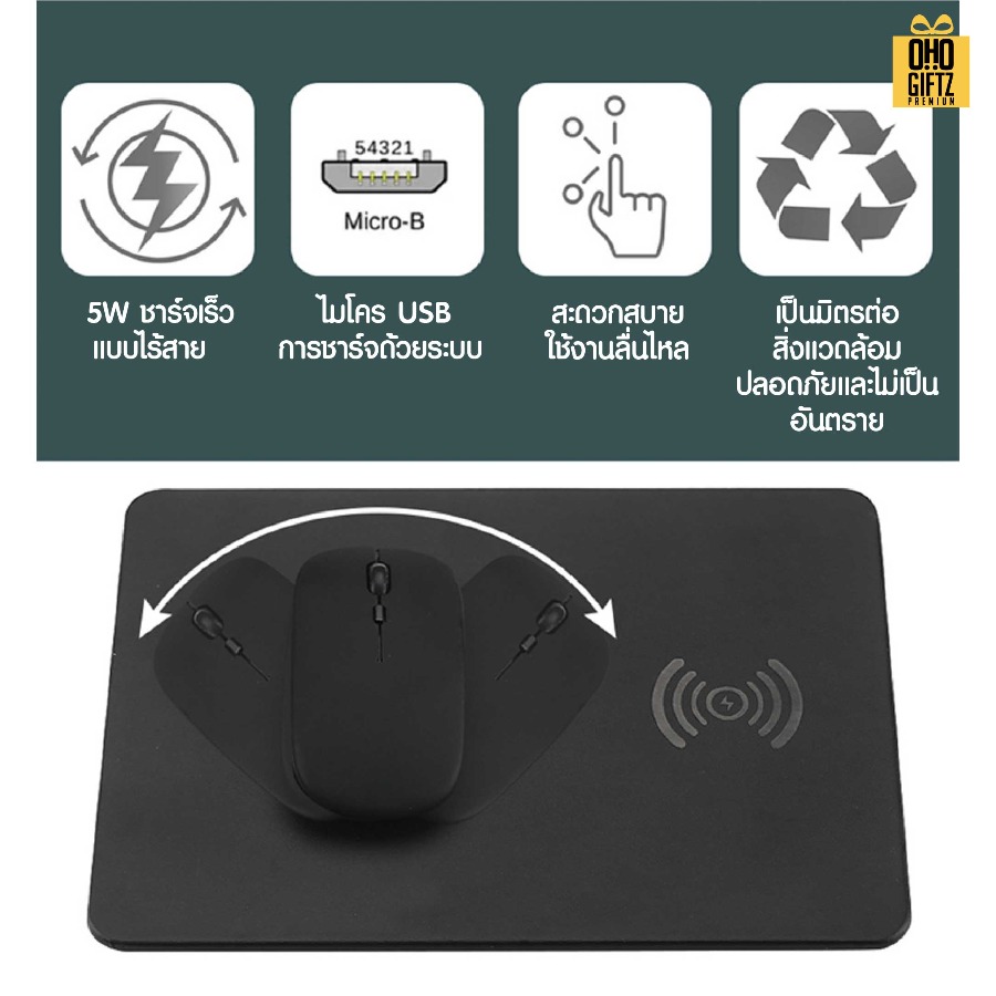 แผ่นรองเม้าส์พร้อมที่ชาร์จมือถือไร้สาย สกรีนโลโก้ ทำเป็นของพรีเมี่ยมได้ (ขั้นต่ำ 100 ชิ้น)