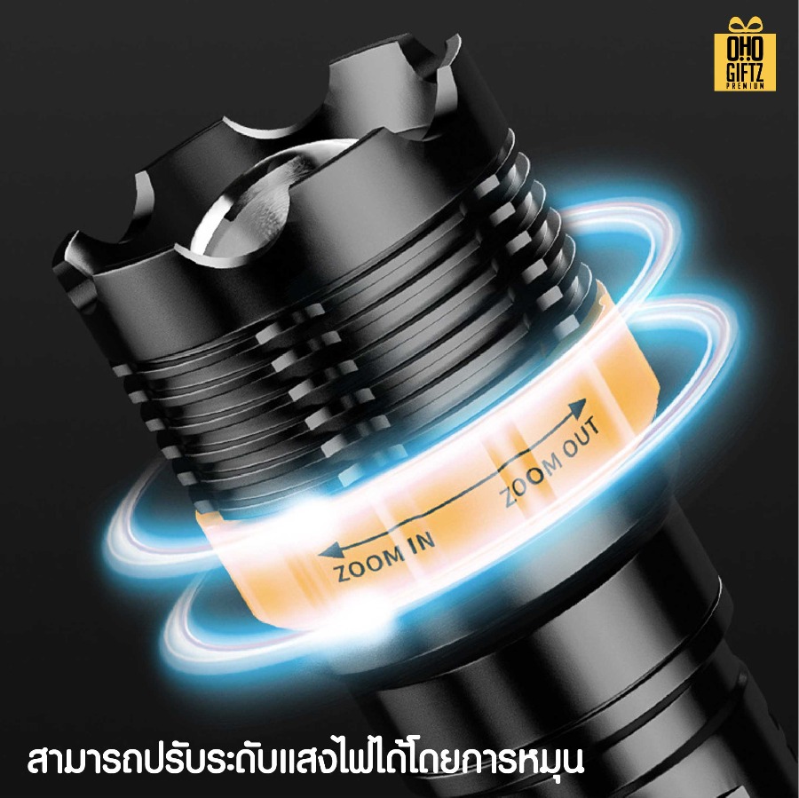 ไฟฉาย LED ซูมได้ 3 โหมดพร้อมเชือกคล้องมือ สกรีนโลโก้ ทำเป็นของพรีเมี่ยมได้ (ขั้นต่ำ 100 ชิ้น)