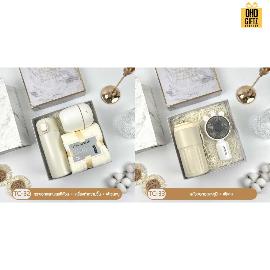 -6 Giftset ชุดของขวัญโทนสีขาวกระบอกสแตนเลส+พัดลม