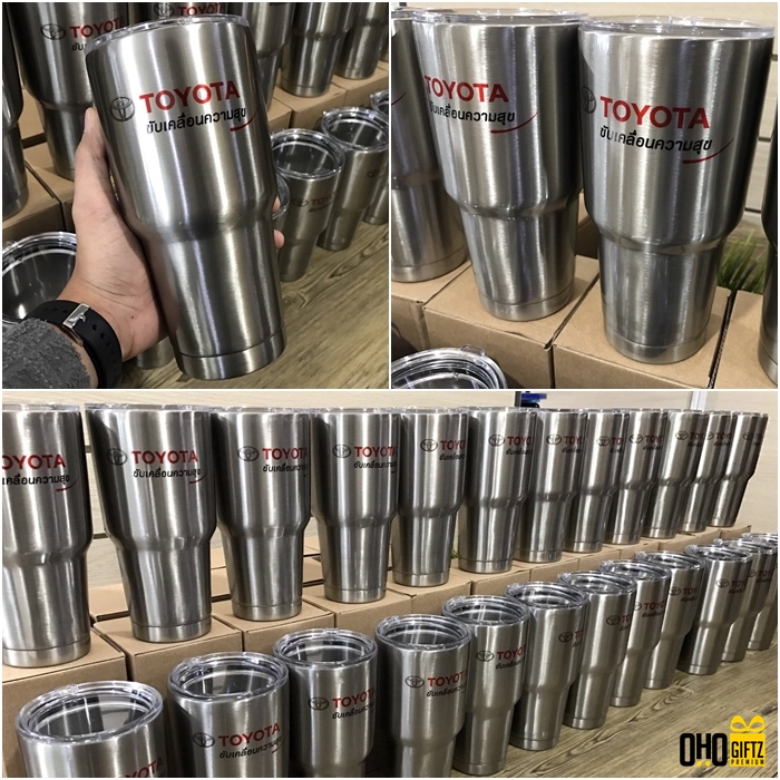 แก้วสแตนเลสเก็บความเย็นมีหู สกรีนโลโก้ ทำเป็นของพรีเมี่ยมได้