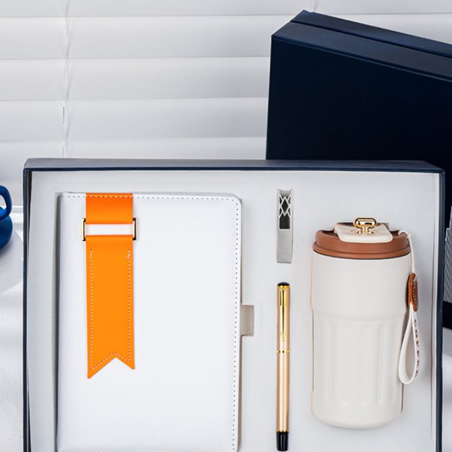 สมุดโน้ตออกแบบมาอย่างเรียบง่ายแต่ดูดี จับคู่กับปากกาที่เขียนลื่น ช่วยเสริมความสะดวกในการใช้งานประจำวัน แก้วเก็บอุณหภูมิที่มาพร้อมฝาปิดแน่นหนาเหมาะสำหรับพกพาเครื่องดื่มไปได้ทุกที่ และแฟลชไดร์ฟขนาดพกพาที่ใช้งานสะดวก ตอบโจทย์ทั้งด้านความจำและความคล่องตัว ทั้งหมดถูกจัดเรียงอย่างสวยงามในกล่องบรรจุภัณฑ์ที่สามารถสั่งทำโลโก้หรือชื่อบริษัทได้ เพิ่มมูลค่าให้กับของขวัญอย่างมีสไตล์