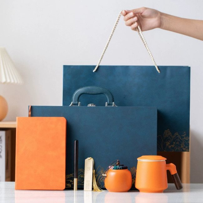 ชุดของขวัญชุดนี้ถูกออกแบบมาอย่างพิถีพิถันเพื่อมอบความประทับใจ ด้วยดีไซน์ที่เรียบหรูและทันสมัย เหมาะสำหรับเป็นของขวัญในโอกาสสำคัญทางธุรกิจหรือมอบให้แก่คนพิเศษ ภายในชุดประกอบด้วยสมุดบันทึกดีไซน์คลาสสิก ปากกาคุณภาพดี แก้วน้ำเซรามิกพร้อมที่กรองชาและฝาปิดที่มีด้ามจับไม้ และโถขนาดเล็กสำหรับใส่ชาหรือของชิ้นเล็กๆ ซึ่งทั้งหมดนี้ถูกจัดวางอย่างเป็นระเบียบในกล่องของขวัญสีเข้มที่ดูหรูหรา