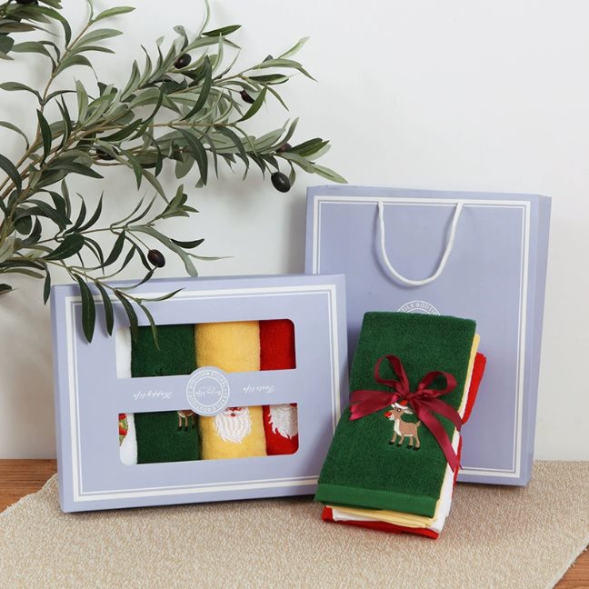 ชุดผ้าขนหนูผ้าฝ้ายบริสุทธิ์สำหรับเทศกาลคริสต์มาสนี้เป็นของขวัญที่สมบูรณ์แบบสำหรับแจกในงานเลี้ยงปีใหม่ งานกิจกรรมของบริษัท หรือมอบเป็นของขวัญกลุ่มสำหรับเด็กและครอบครัวในช่วงเทศกาล ตัวผ้าขนหนูมีสีสันสดใสตามธีมคริสต์มาส เช่น สีแดง สีเขียว และสีขาว พร้อมปักลายเทศกาลที่น่ารักและสร้างสรรค์ เช่น ลายซานตาคลอส ลายกวางเรนเดียร์ และลายพวงหรีด ซึ่งทำให้ของขวัญดูพิเศษและเต็มไปด้วยจิตวิญญาณแห่งการเฉลิมฉลอง ผ้าขนหนูเป็นของใช้ในชีวิตประจำวันที่ทุกคนต้องใช้ ทำให้มั่นใจได้ว่าของขวัญชิ้นนี้จะถูกนำไปใช้งานจริง และสร้างความรู้สึกอบอุ่นให้แก่ผู้รับในทุกครั้งที่หยิบใช้