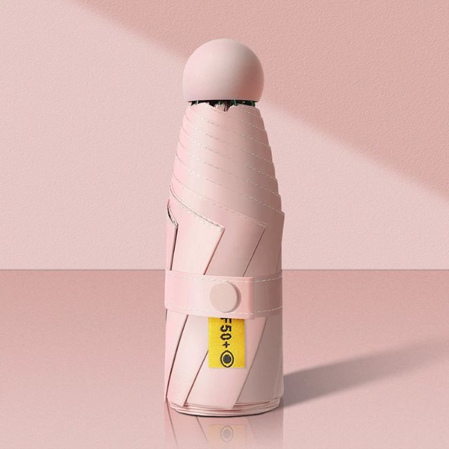ร่มพกพาแบบแคปซูล ดีไซน์กะทัดรัด น้ำหนักเบา พกง่าย มาพร้อมคุณสมบัติกันแดดระดับ UPF50+ ช่วยป้องกันรังสียูวีได้มากกว่า 99% แม้อากาศร้อนจัดถึง 50°C ก็ยังช่วยให้ผิวไม่หมองคล้ำ พื้นผิวร่มเคลือบสารสะท้อนแสง ช่วยลดความร้อนจากแสงแดดได้ดีเยี่ยม
