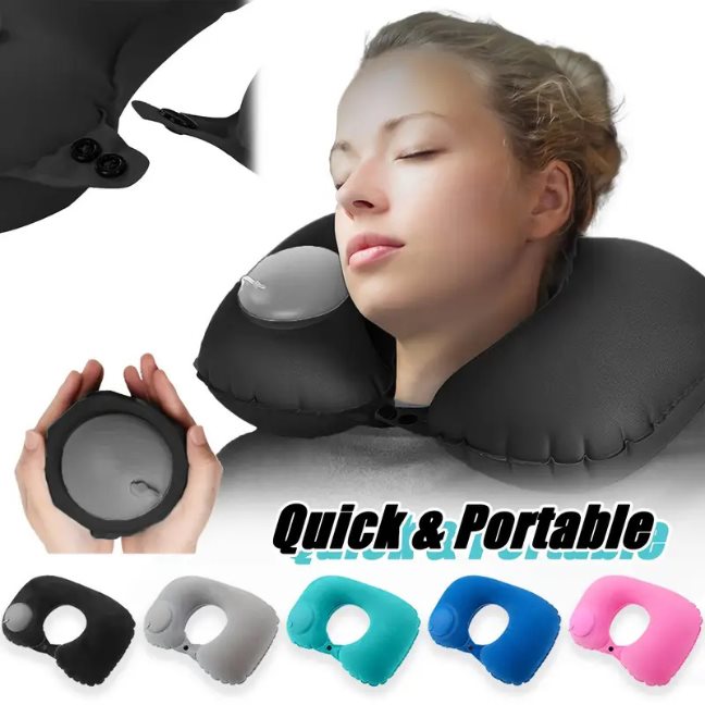 หมอนรองคอพกพาพร้อมปั๊มลมในตัว นุ่มสบายทุกที่ ไม่ต้องเป่า