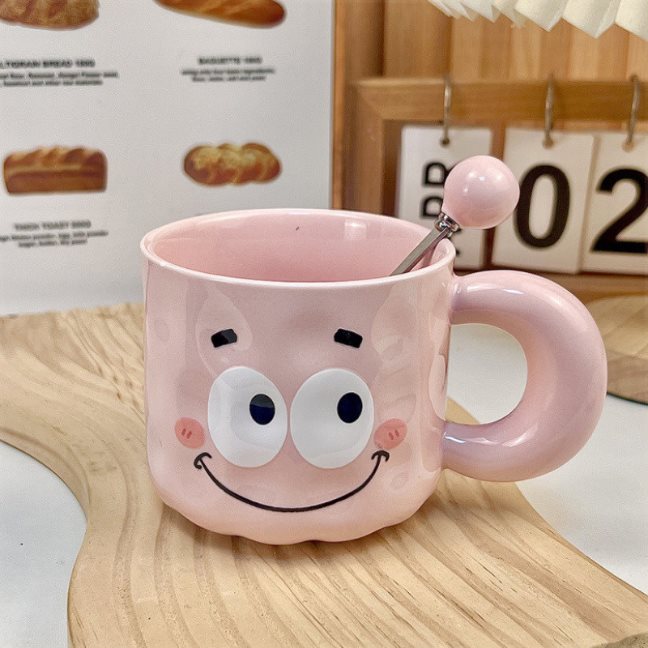 แก้วน้ำใบนี้มีจุดเด่นอยู่ที่ลวดลายหน้าตาการ์ตูนที่แสดงสีหน้าอย่างเป็นมิตร ช่วยสร้างความรู้สึกผ่อนคลายให้กับผู้ใช้ได้อย่างง่ายดาย สีชมพูอ่อนที่ใช้กับพื้นผิวของแก้ว ยังช่วยเติมบรรยากาศให้นุ่มนวลและอบอุ่น ไม่ว่าจะใช้ดื่มกาแฟในช่วงเช้า หรือชาร้อนในยามเย็น ก็สามารถสร้างช่วงเวลาที่รู้สึกดีได้ทุกครั้งที่หยิบขึ้นมาใช้งาน