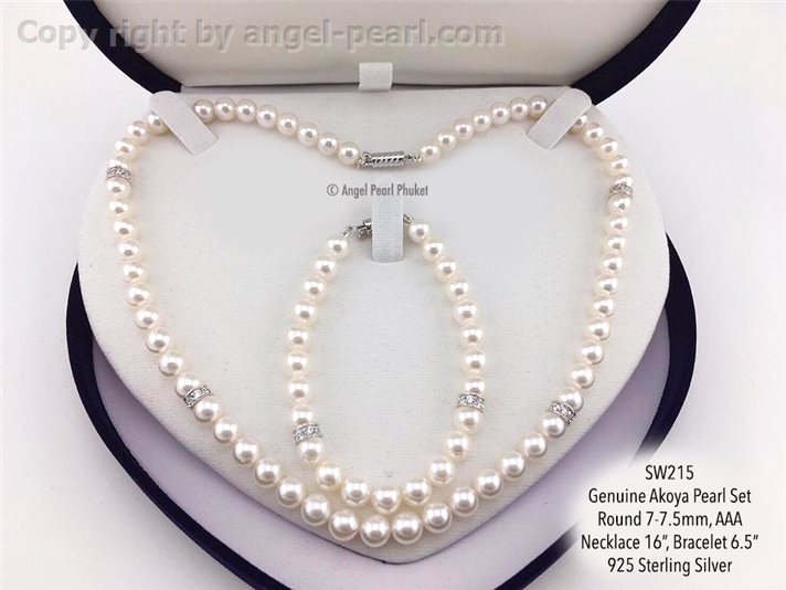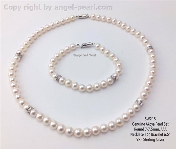 ชุดเครื่องประดับไข่มุกน้ำเค็มแท้ Akoya สีขาว 7-7.5mm, AAA