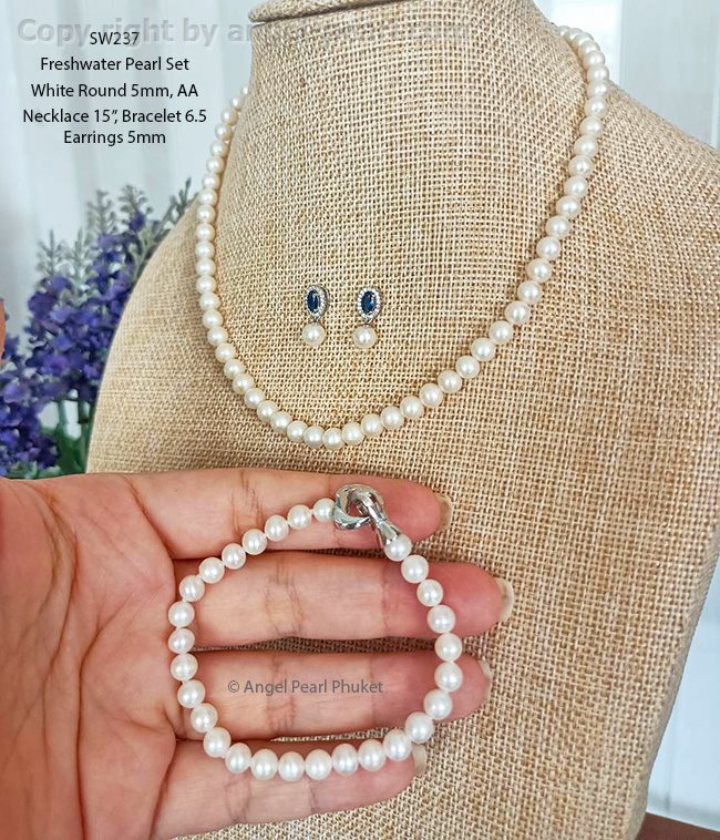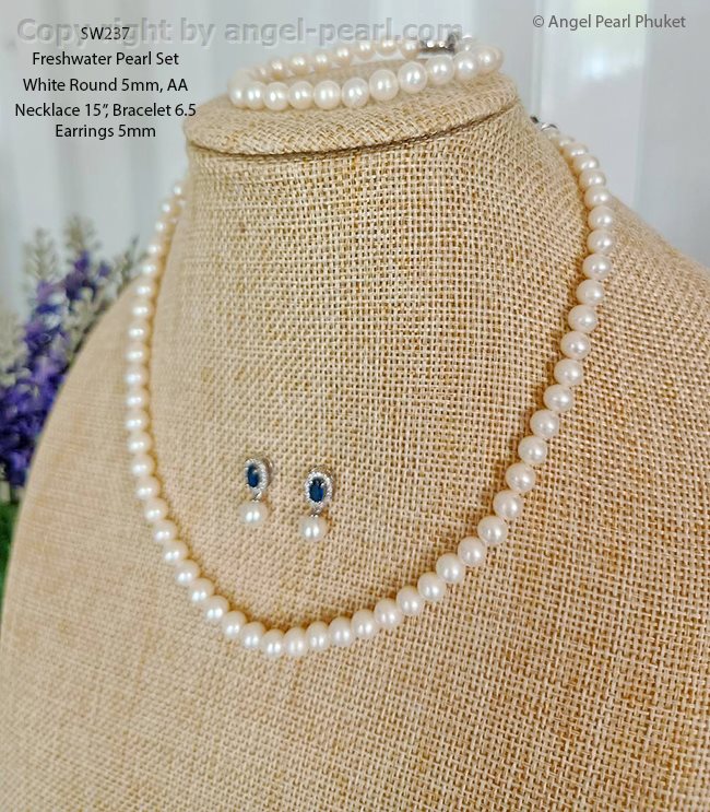ชุดไข่มุกแท้ภูเก็ต สีขาว 5-6mm น้ำงามสวย, AA