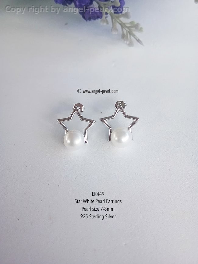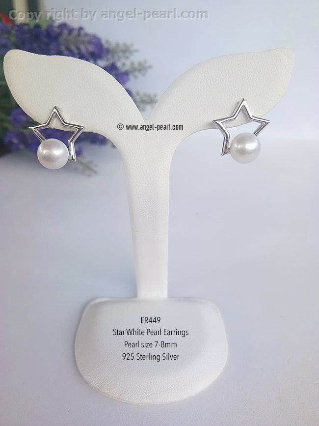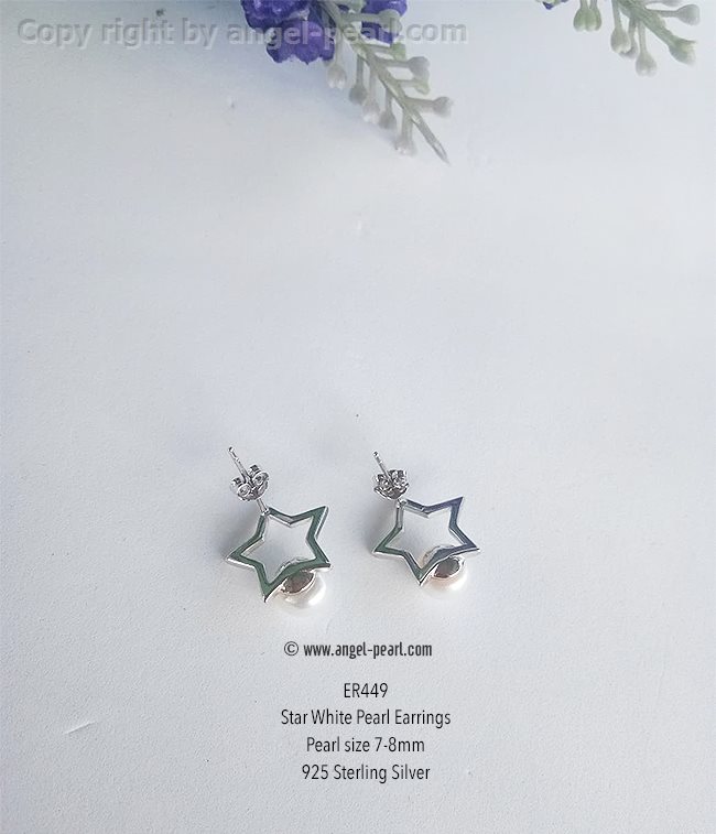 ต่างหูไข่มุกแท้สีขาว ขนาด 7-8mm แป้นดาวแสนสวย