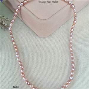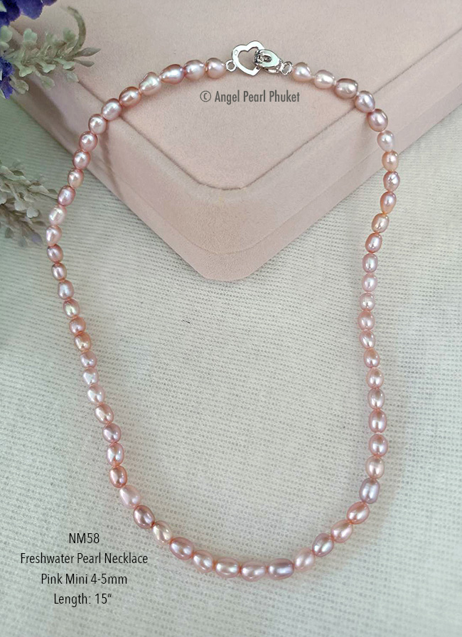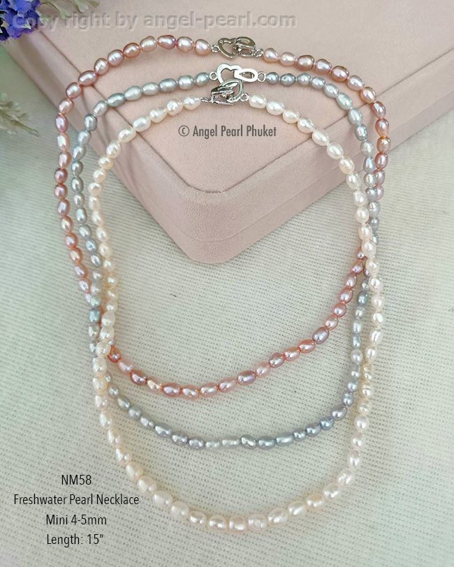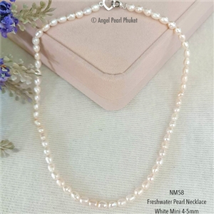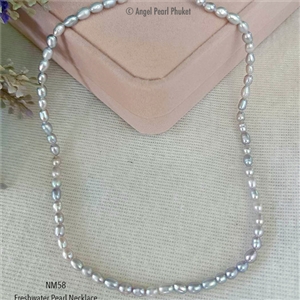 [NP47] สร้อยคอไข่มุกแท้ทรงเม็ดข้าวจิ๋ว 3-4m ตะขอห้อยพระ