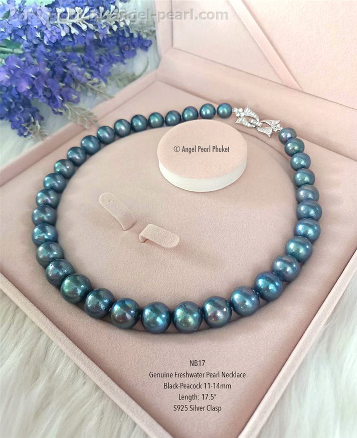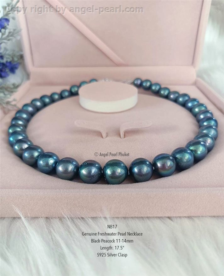 สร้อยคอไข่มุกแท้สีดำปีกแมงทับ น้ำงาม เงาวาว สีสวยมากกกกกก ทรงสวย มีรอยธรรมชาติเล็กน้อย คัดเกรดคุณภาพ