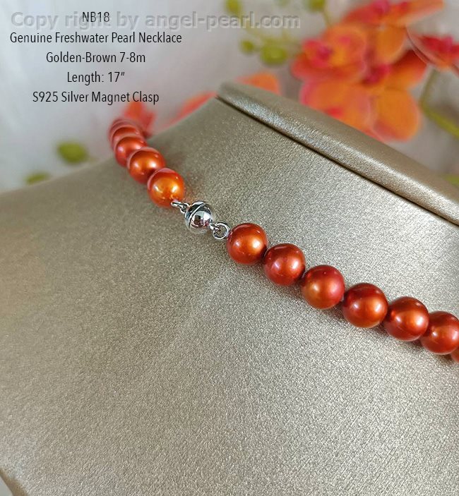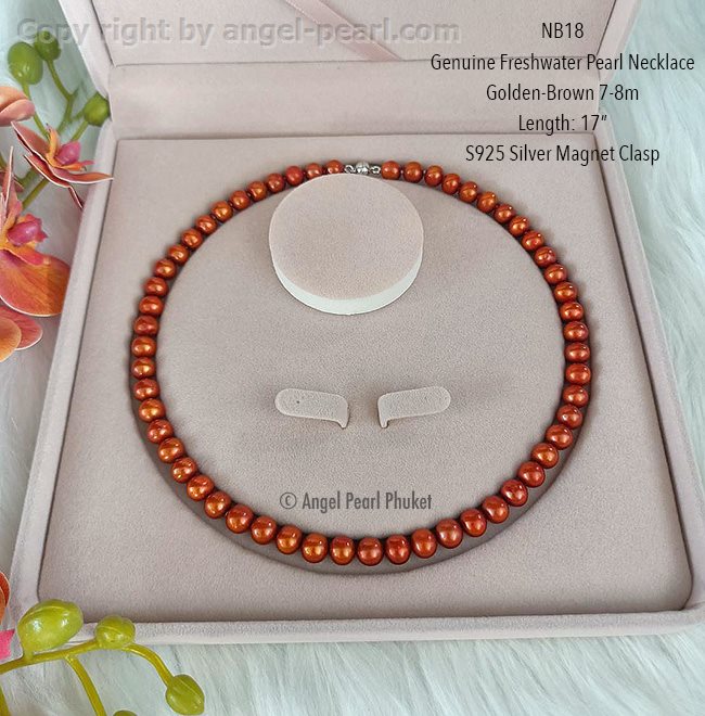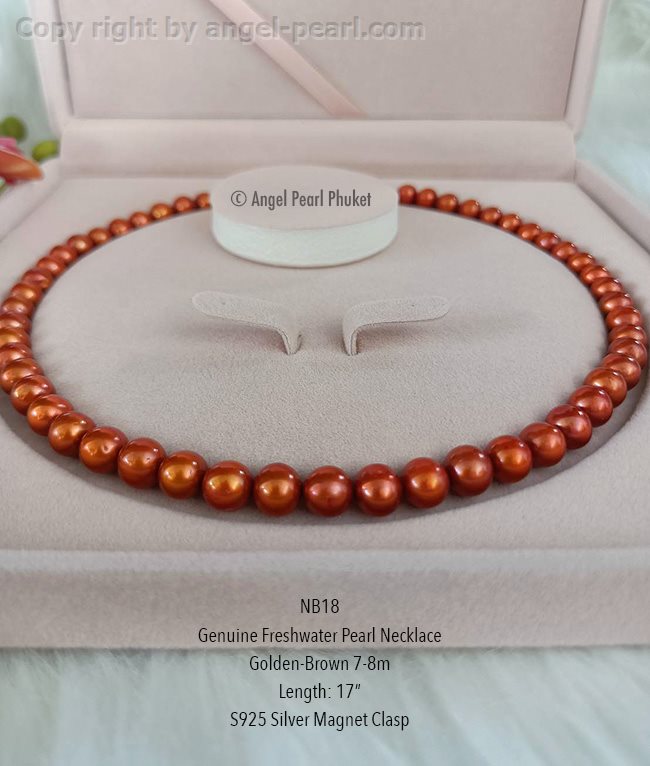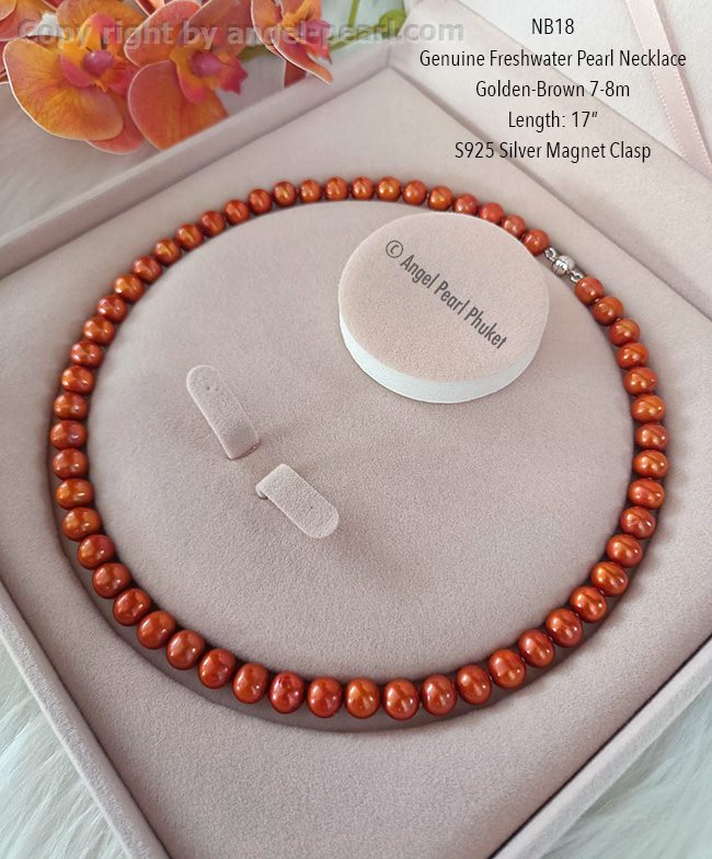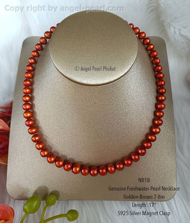 สร้อยคอไข่มุกแท้สีน้ำตาลทอง กลมสวย 8mm, 17