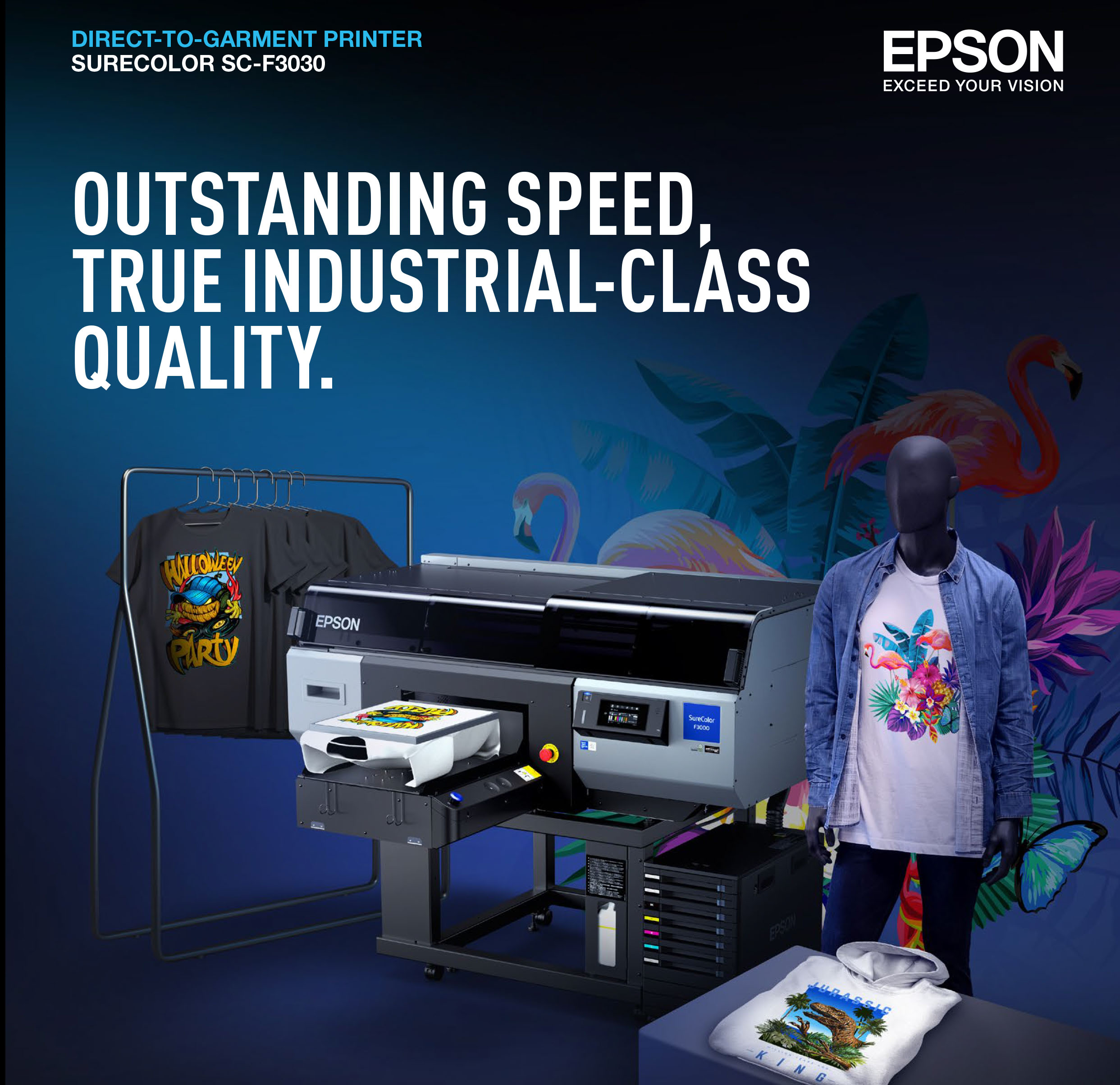ยกระดับธุรกิจ เพิ่มประสิทธิภาพการพิมพ์ด้วยเครื่องพิมพ์สิ่งทอระบบดิจิทัล แบบพิมพ์ลงผ้าโดยตรง (Direct-To-Garment) รุ่น SC-F3030 ให้งานพิมพ์แม่นยำ คุณภาพสูง ตอบโจทย์การพิมพ์ปริมาณมาก ในเวลาอันสั้น