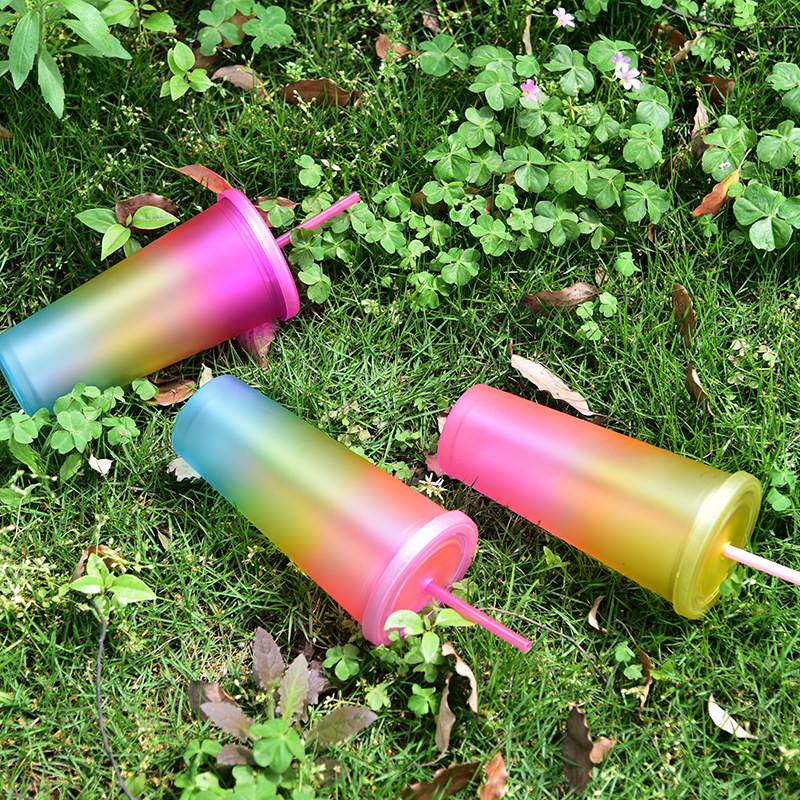 ขวดน้ำ ขวดน้ำสีรุ้ง แก้วสายรุ้ง กระบอกน้ำ แก้วน้ำ แก้วน้ำแบบใส ทรงคริสตัล ขนาด 20oz