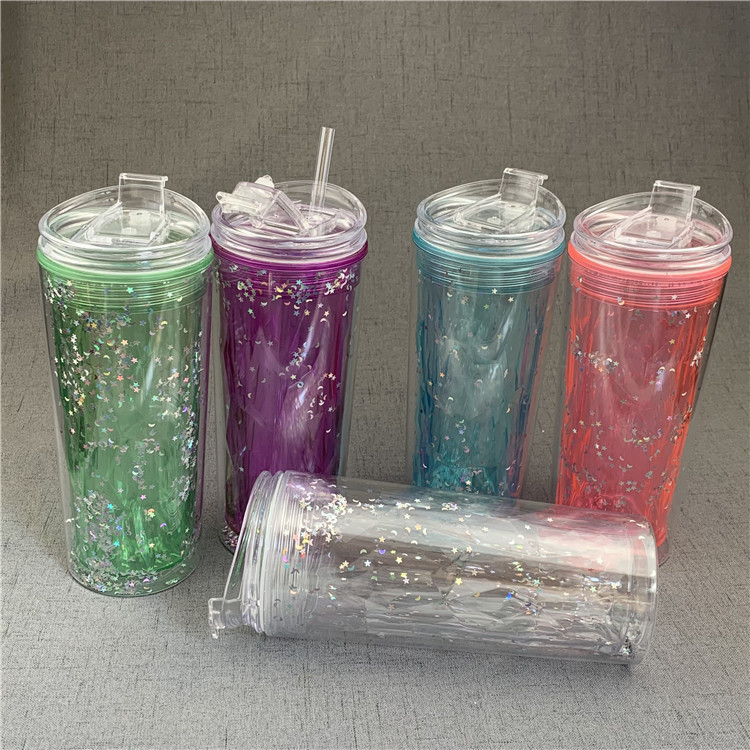 แก้วพลาสติก2ชั้น แก้วเก็บความเย็น กระบอกน้ำ แก้วน้ำ แก้วน้ำแบบใส ทรงคริสตัล