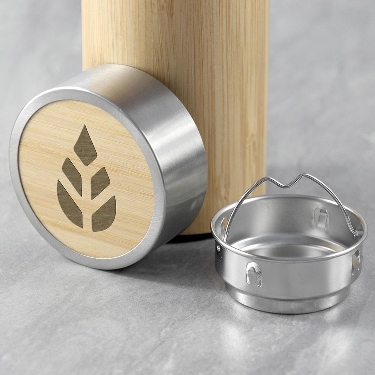 TYESO แก้วน้ำเก็บอุณหภูมิ มีหูจับ ฐานไม้โอ๊คเคลือบเงา แก้วกาแฟ แก้วเก็บความร้อน