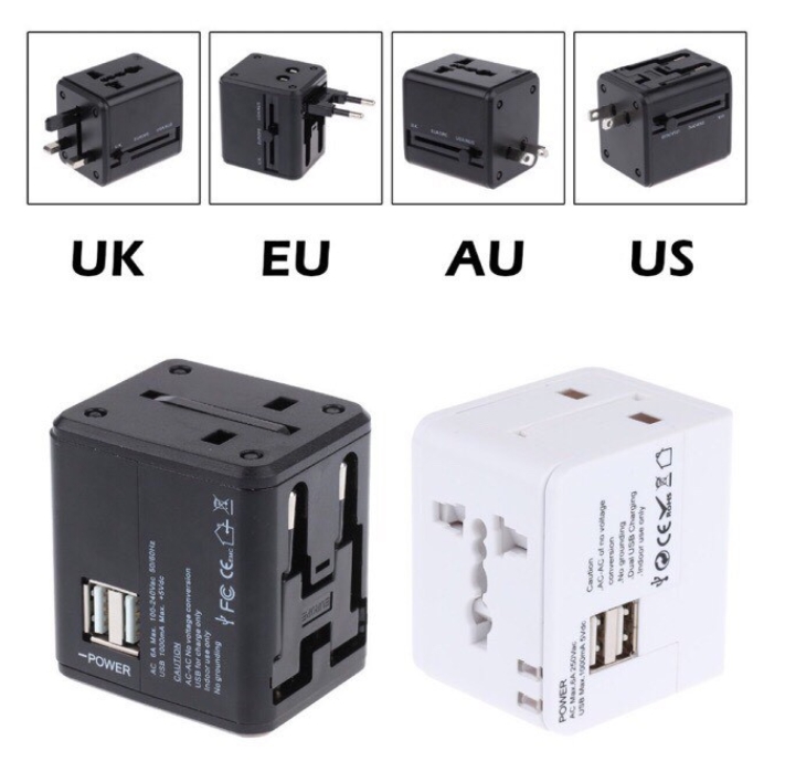 ปลั๊กไฟ Dual USB Universal Adapter All in One พร้อม USB สามารถเสียบชาร์จแบตมือถือ/ไอแพด ใช้ได้ทั่วโลก US/UK/EU/AUรองรับกระแสไฟฟ้า 100-250 โวลต์ สามารถเชื่อมต่อเครื่องใช้ไฟฟ้าได้ทั่วโลก สะดวกพกพา และปลอดภัย มีหัวปลั๊กทั้งหมด 4 หัวปลั๊ก พร้อม 2xUSB เสียบชาร์จแบตมือถือและอุปกรณ์อื่นๆ รองรับที่เสียบปลั๊กไฟมาตรฐานทั่วโลกมากกว่า 150 ประเทศ ปลั๊กไฟสำหรับเดินทางท่องเที่ยว ปลั๊กไฟใช้ได้ทั่วโลก (Universal Travel Adapter Plug) สำหรับผู้ที่ต้องเดินทางไปต่างประเทศ ไม่ว่าจะเป็นทวีปยุโรป อเมริกา เอเชีย ออสเตรเลียและนิวซีแลนด์ หรือกว่า 150 ประเทศทั่วโลก เพียงพกพาปลั๊กไฟ Universal Travel Adapter Plug