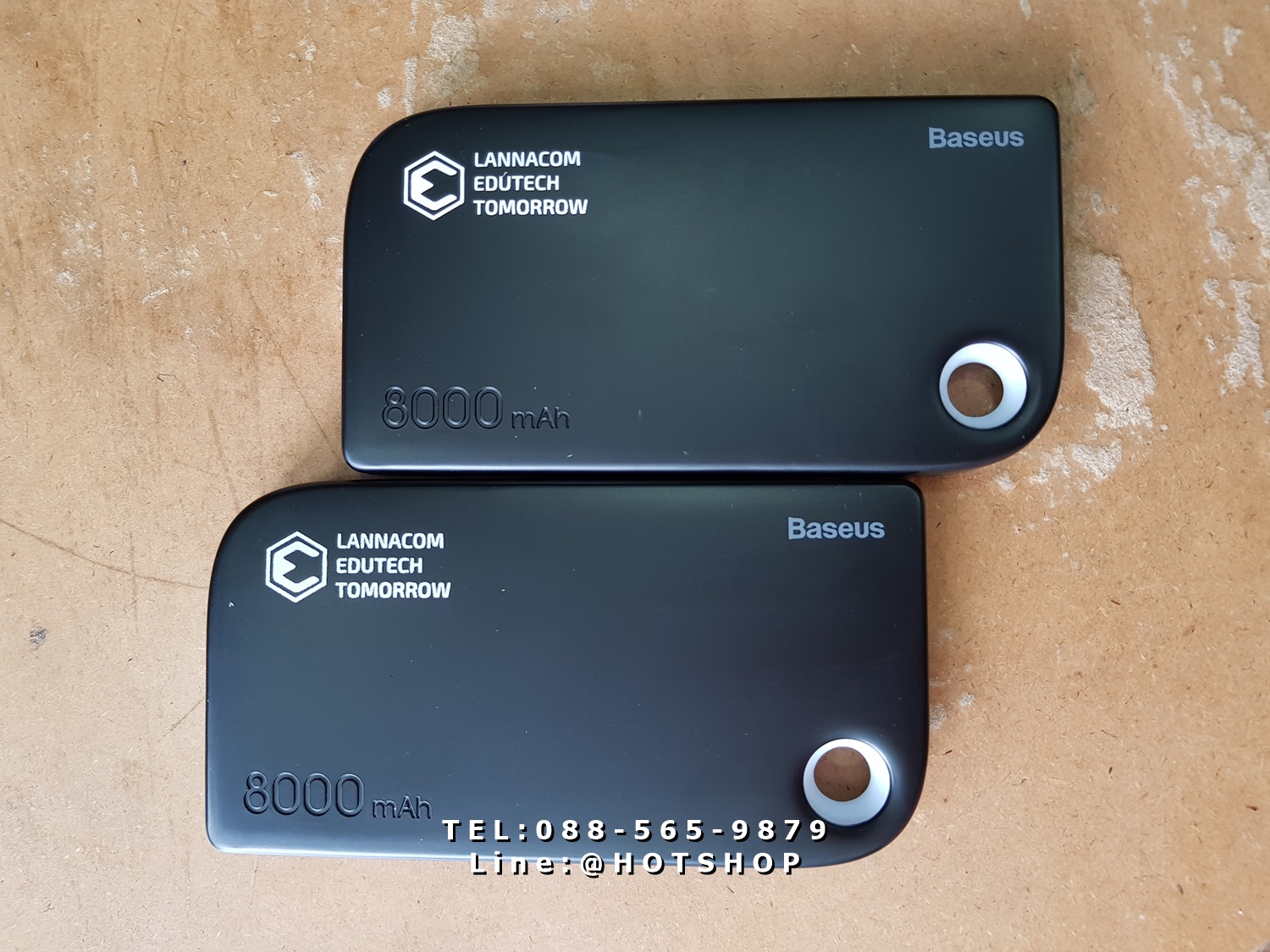 รับสั่งผลิต สั่งทำ Powerbank แบตสำรอง พร้อมสกรีนโลโก้ รับสกรีน powerbank แบตสำรอง รุ่น baseus 8000mah ชาร์ตมือถือได้ 2-3 รอบ