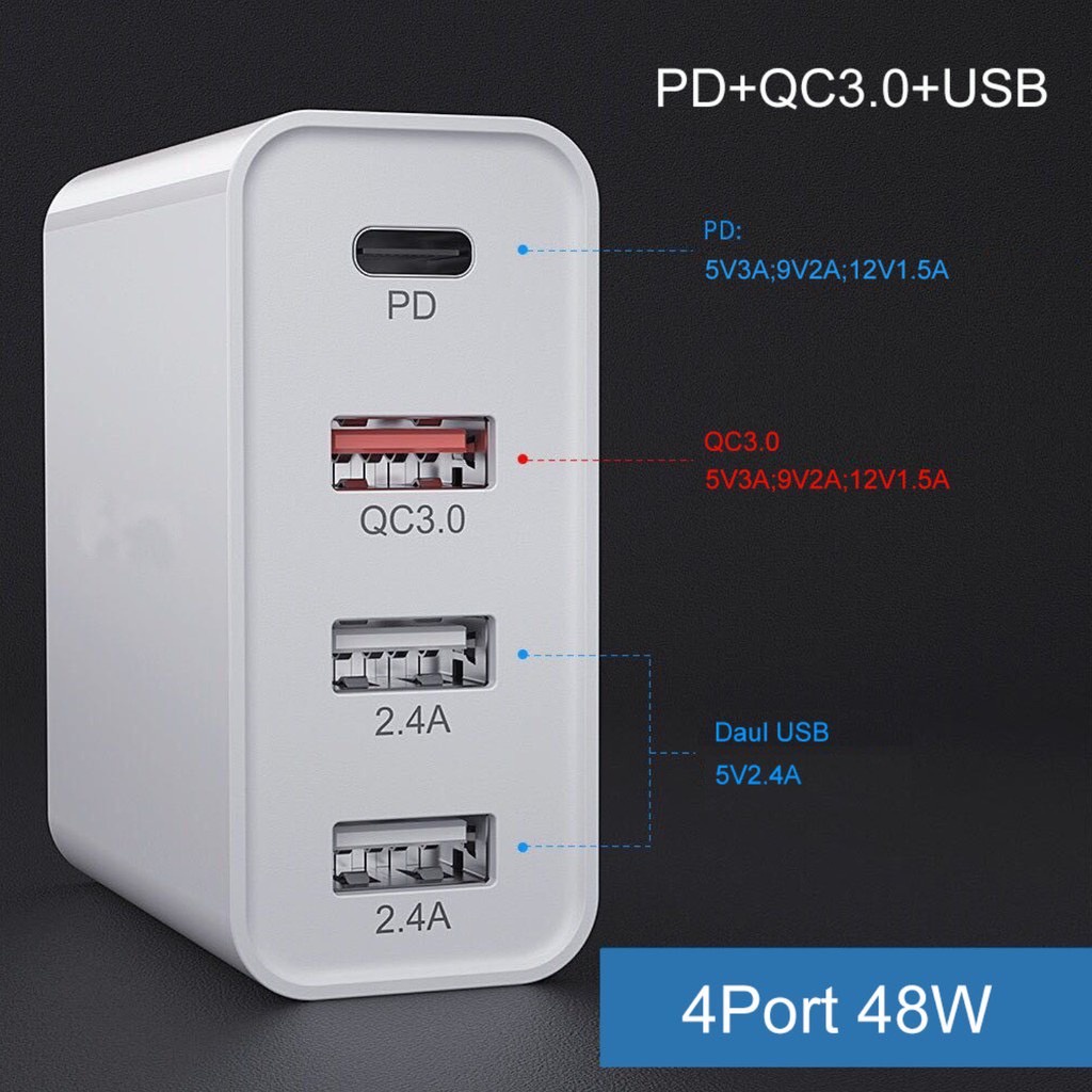 หัวชาร์จเร็ว USB / USB Type c 48W PD Quick Charge 3.0 4 port