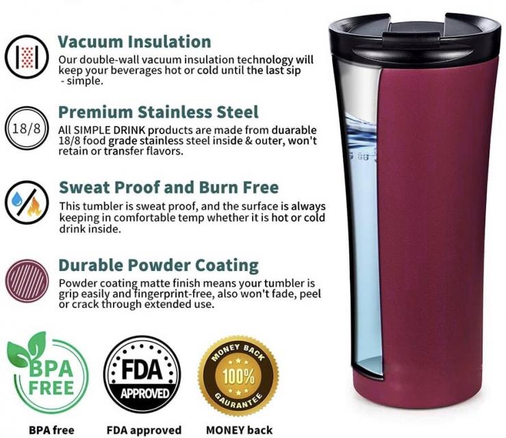 แก้วกาแฟฝาล็อคสแตนเลส 500ml กระบอกน้ำใส่น้ำร้อน รับสกรีน แก้วเก็บความเย็น -กระบอกน้ำใส่น้ำร้อน ใส่น้ำเย็น สะดวกต่อการดื่มทุกสถานที่ -ใช่ใส่เครื่อง ชา,กาแฟ,น้ำอัดลม,น้ำผลไม้,น้ำเปล่า ฯลฯ -เก็บอุณหภูมิความร้อน/ความเย็น 4-12ชั่วโมง(ขึ้นอยู่กับอากาศพื้นที่) -ฝาเกลียว เปิด/ปิด สะดวกต่อการยกดื่ม -ผลิตจาก stainless steel แข็งแรงทนทานต่อการใช้งาน -เหมาะแก่การใช้ในชีวิตประจำวัน กิจกรรมกลางแจ้ง ออกกำลังกาย พกพาได้ทุกที่ -ดีไซน์เรียบหรู สีด้านให้ความทันสมัยยิ่งขึ้น -สามารถใช้งานได้ทุกสถานที่ พกพาได้ทั้งในรถ นอกสถานที่ -มี 4 สี สีเงิน,สีดำ,สีม่วงมังคุด,สีน้ำเงิน -ขนาด 500ml