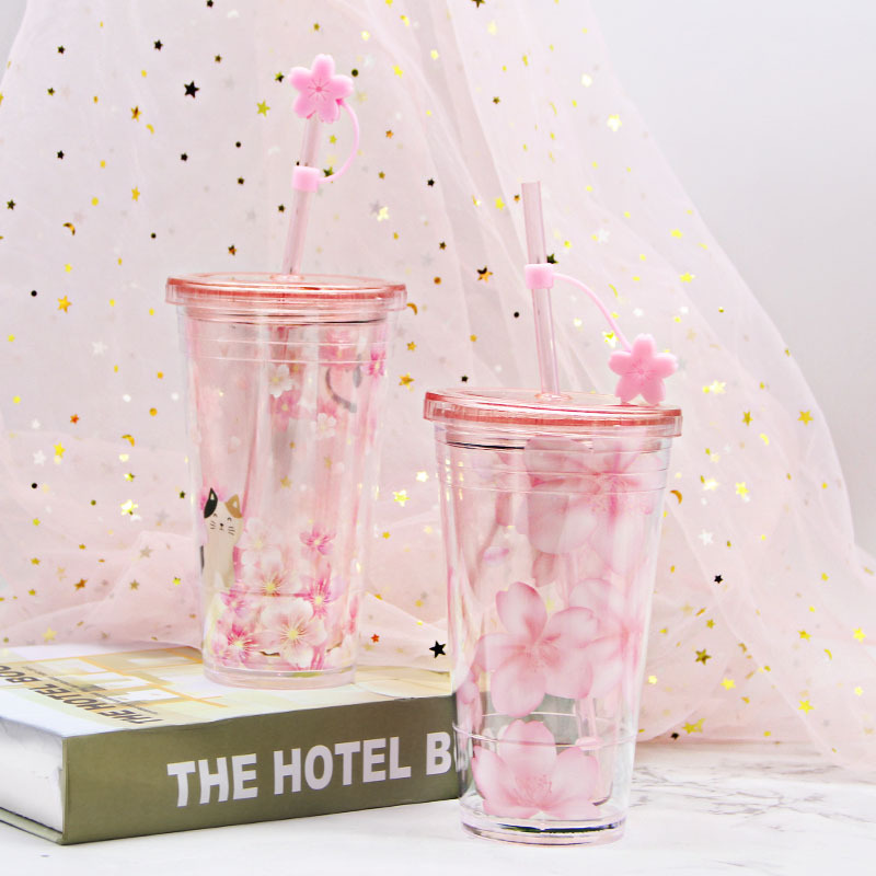 แก้วพลาสติก2ชั้น แก้วน้ำลายดอก แก้วดอกไม้ แก้วเก็บความเย็น กระบอกน้ำ แก้วน้ำ แก้วน้ำแบบใส ทรงคริสตัล