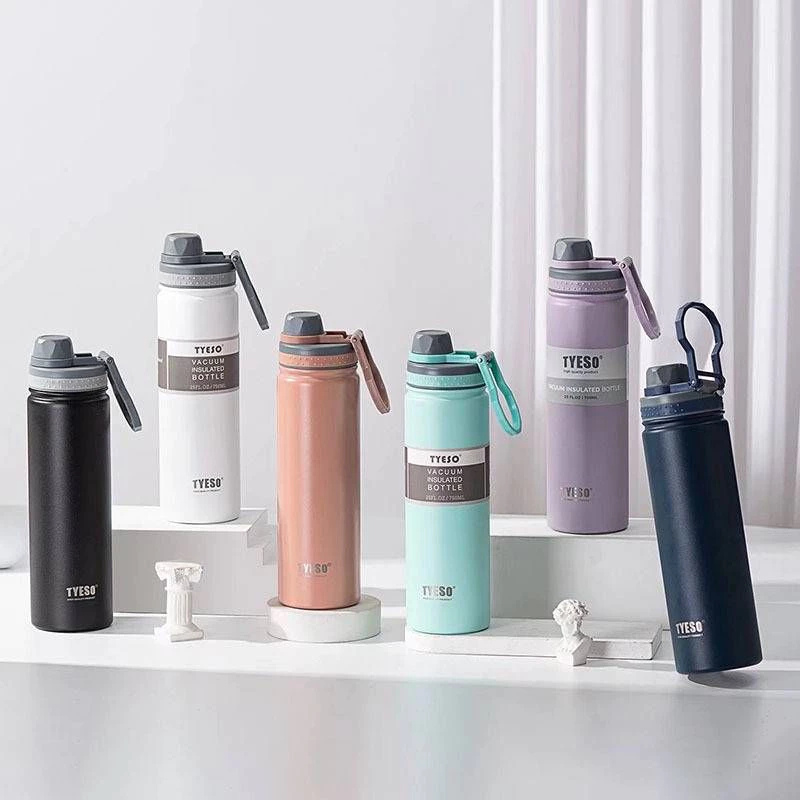 TYESO กระบอกน้ำเก็บอุณหภูมิ มีหูหิ้ว มี 5 สี ขนาด 530/750 ml สแตนเลส 304 ขวดน้ำเก็บความเย็น ขวดน้ำพกพา