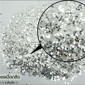 กากเพชรเนื้อเกล็ด สีขาวมุก ( เกล็ดเล็กผสมใหญ่ ) สำหรับผสมเรซิ่นเคลือบนูน