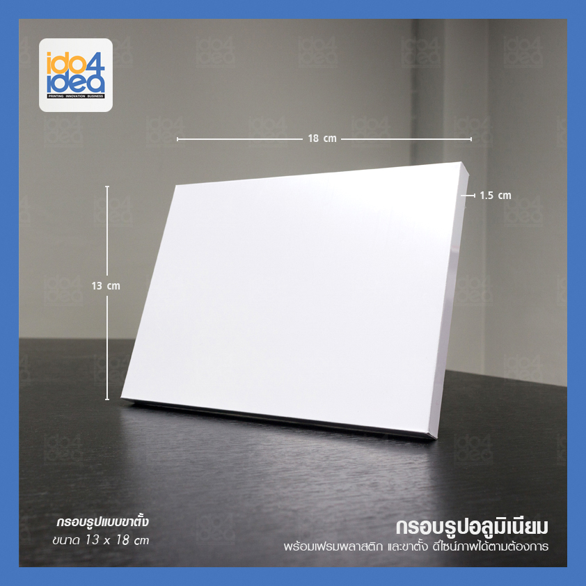กรอบรูปอลูมิเนียมสำหรับงานสกรีน กรอบรูปอลูมิเนียม พร้อมเฟรมพลาสติกและขาตั้ง ตั้งได้ทั้งแนวตั้ง และแนวนอน ขนาด 13 x 18 x 1.5 ซม.