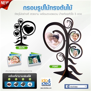 [1100FT005] กรอบรูปไม้แผ่นไม้สำหรับงานสกรีน กรอบรูปไม้ ทรงต้นไม้ ป้ายห้อยหัวใจ 5 ดวง