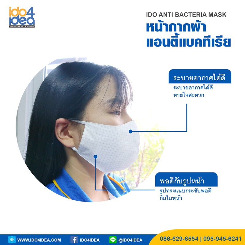 IDO ANTI BECTERIA MASK  นวัตกรรมหน้ากากผ้าแอนตี้แบคทีเรีย
