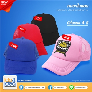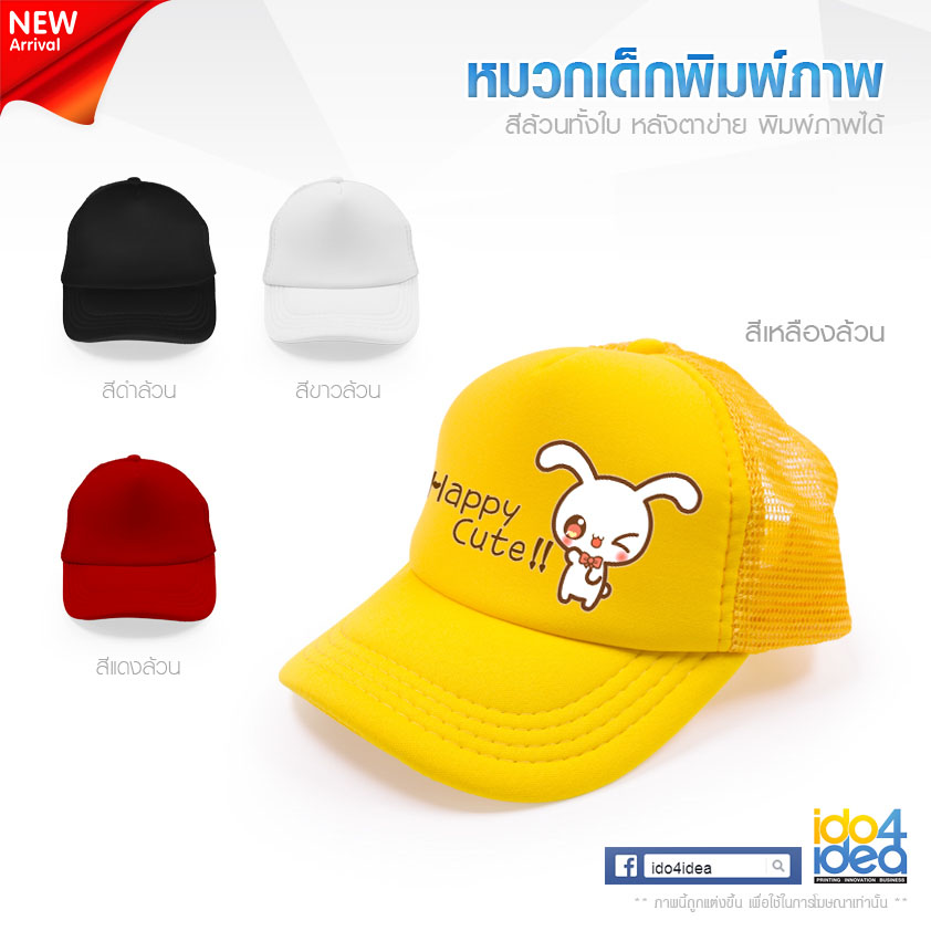 [1606HBW01] หมวกเปล่า สำหรับงานสกรีน หมวกเด็ก สีเต็มใบ หลังตาข่าย