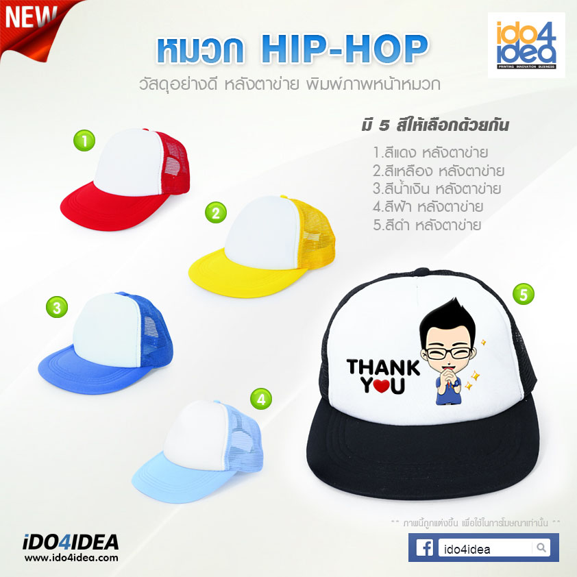 [1605HPB0] หมวกเปล่า สำหรับงานสกรีน หมวก Hip Hop หลังตาข่ายหน้าขาว ปีสี
