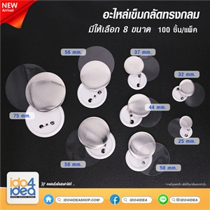 [1906BC000] อะไหล่เข็มกลัดทรงกลม มี 8 ขนาดให้เลือก 25/32/37/44/50/56/58/75 mm. 100 ชิ้น/แพ็ค