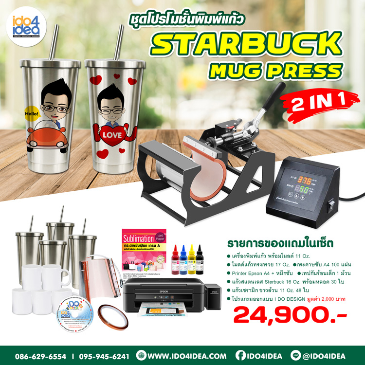 [Starbuck Mug Press 2 in 1] เครื่องสกรีนแก้วสตาร์บัค Starbuck,เครื่องพิมพ์แก้วสตาร์บัค Starbuck Mug Press 2 in 1