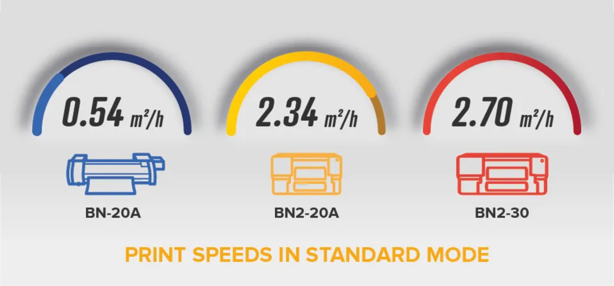 อุปกรณ์ซีรีส์ BN2 Series ใช้หัวพิมพ์และหมึกความละเอียดสูงแบบเดียวกับที่พบในเครื่องพิมพ์ที่ใช้โดยผู้เชี่ยวชาญในการผลิตกราฟิก อุปกรณ์เหล่านี้ไม่เพียงแต่ให้สีและคุณภาพภาพถ่ายที่ยอดเยี่ยม แต่ยังแสดงตัวอักษรขนาดเล็กและเส้นละเอียดในรายละเอียดที่ยอดเยี่ยมอีกด้วย นอกจากนี้ยังรองรับ True Rich Color 3 ซึ่งเป็นการตั้งค่าการพิมพ์ที่ได้รับการยกย่องอย่างสูงจากผู้เชี่ยวชาญด้านการพิมพ์
