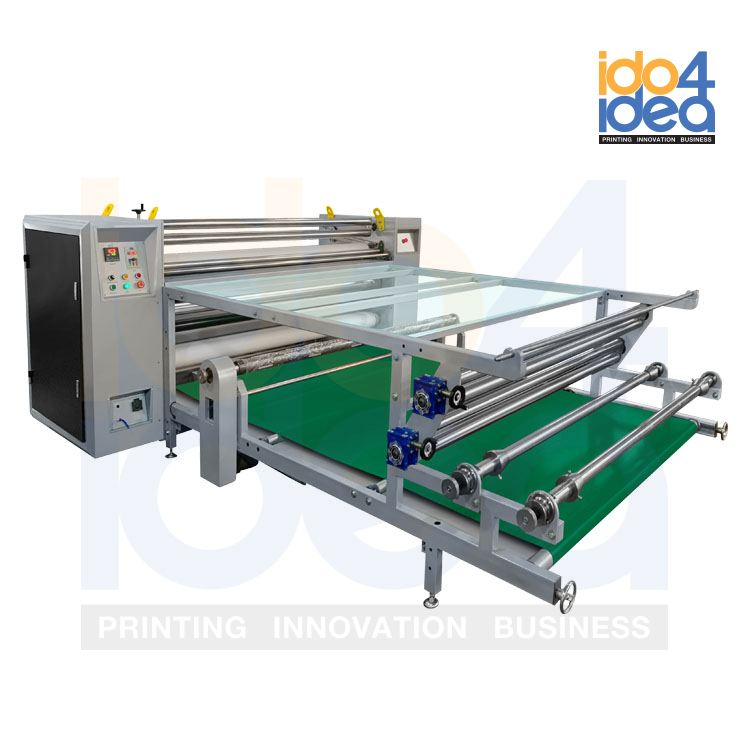 เครื่องรีดร้อน Heat Transfer Roll to Roll ขนาด 1.8 เมตร ใช้ร่วมกับงานพิมพ์หมึกซับลิเมชั่นให้ความร้อนเสมอทั่วโรลรีดทั้งแผ่น รองรับงานรีดผ้าแบบม้วนและงานเป็นชิ้น รวมถึงผ้าพันคอ แผ่นรองเม้าส์ งานพิมพ์สีสด สามารถทำงานต่อเนื่องได้ พร้อมทั้งออกมาให้ใช้งานง่าย ประหยัดแรงผู้ใช้ อีกทั้งยังได้ปริมาณงานที่เพิ่มขึ้น ประหยัดไฟและเนื้อที่จัดวาง รองรับงานรีดผ้าแบบม้วนและงานเป็นชิ้น รวมถึงผ้าพันคอ แผ่นรองเม้าส์