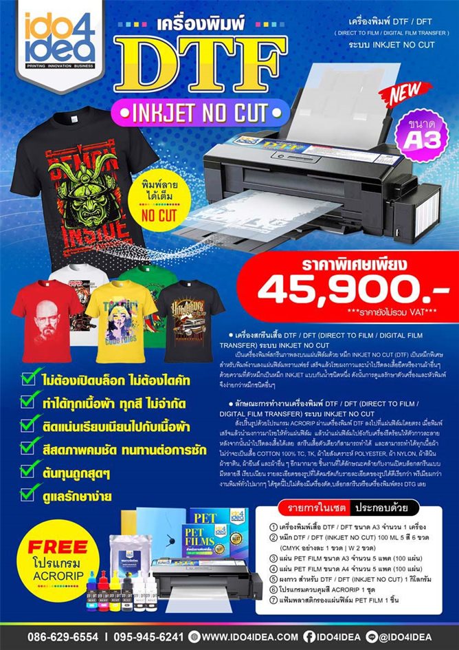 จุดเด่นของงานพิมพ์สกรีนเสื้อด้วย DTF / DFT ( Inkjet No Cut )