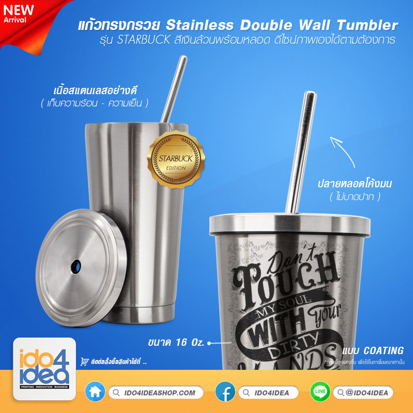 [0416SDSBN] แก้วทรงสตาร์บัค Starbuck แก้วสเตนเลสเก็บร้อน-เย็น สีเงิน พิมพ์ภาพได้ (แบบ Non Coating)