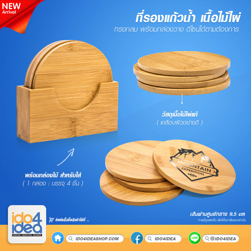 [8500CW05] ที่รองแก้วน้ำ เนื้อไม้ไผ่ทรงกลม ขนาด 9.5 ซม. พร้อมกล่องวาง
